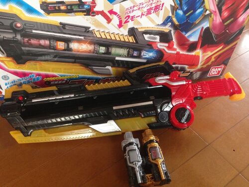 バンダイからリリースされた、仮面ライダービルド 究極豪成 DXフルボトルバスターです。DXフルボトルバスターは、仮面ライダービルドが使う大型の最終武器。フルボトル(別売り)を、最大4本装填可能。ボトルの数に応じ異なる技が発動、発売済みのフルボトルを…
