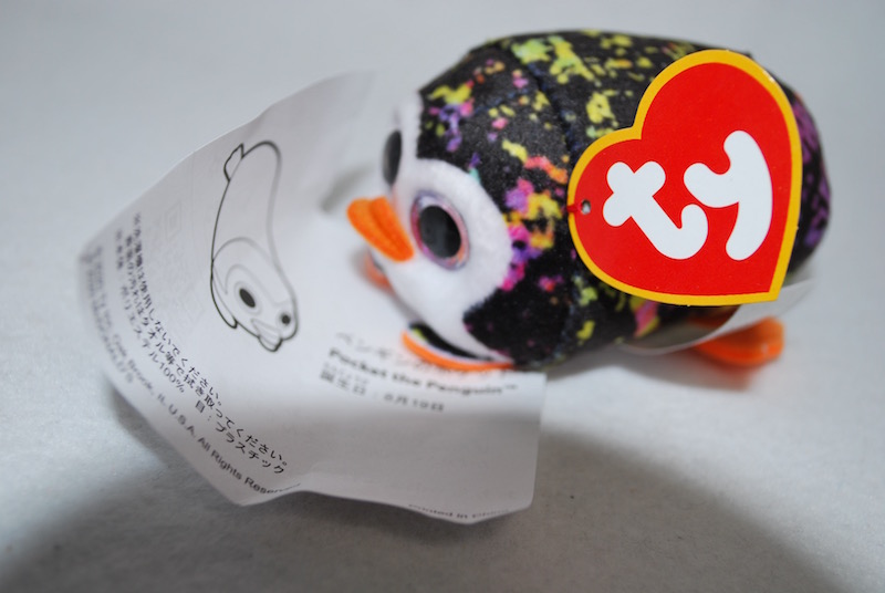 マクドナルドからリリースされた、ハッピーセットの「ティーニータイズ かわいいどうぶつのぬいぐるみ」から、ペンギンのポケットです。