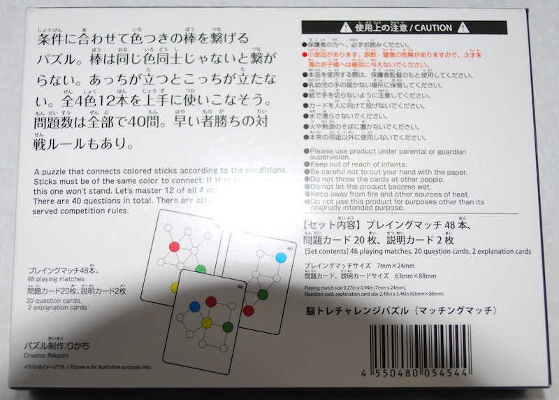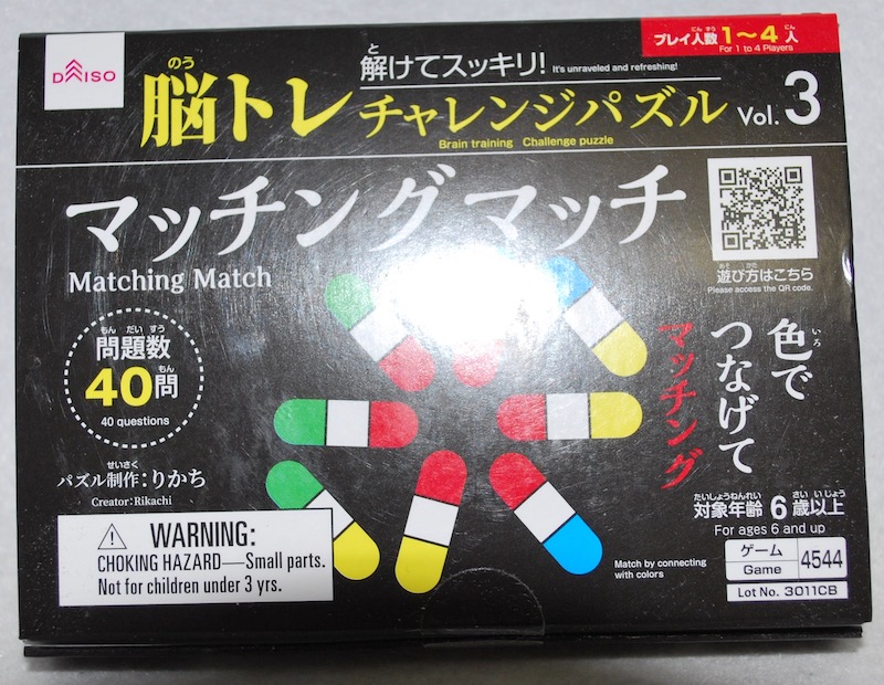 ダイソーからリリースされた、脳トレチャレンジパズルシリーズから、マッチングマッチです。
