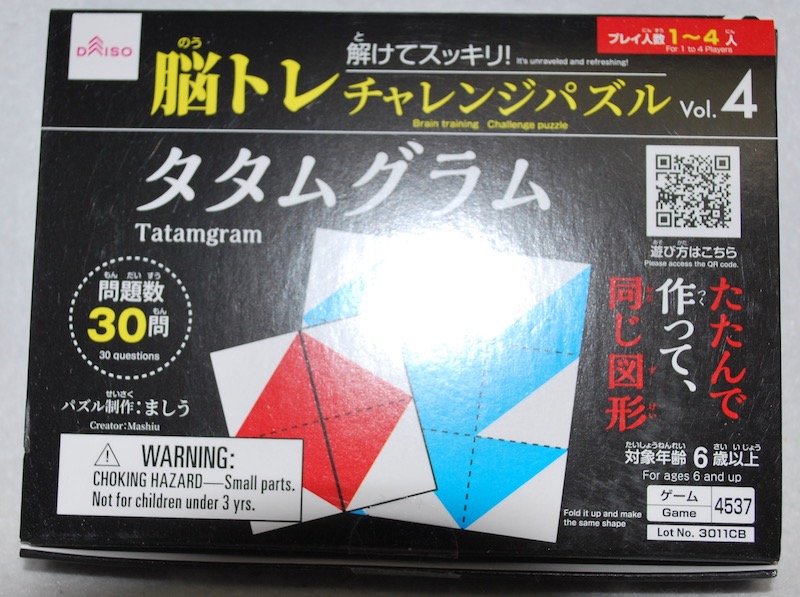 ダイソーからリリースされた、脳トレチャレンジパズルシリーズから、タタムグラムです。