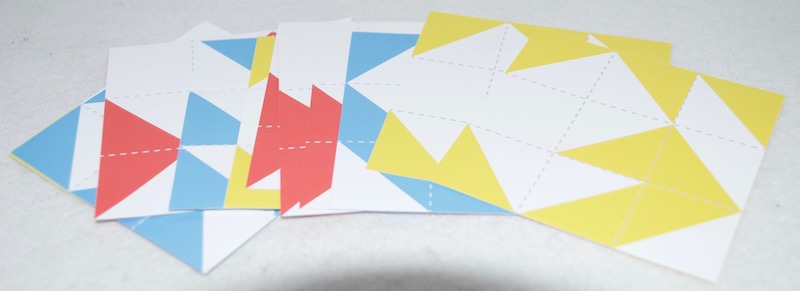 シートを折り畳んで、つなげて同じ図形を作るパズル。