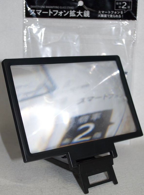 ごく簡単に紹介してしまえば、PVC製のレンズ越しにスマートフォンの画面を拡大して眺められるスタンド。