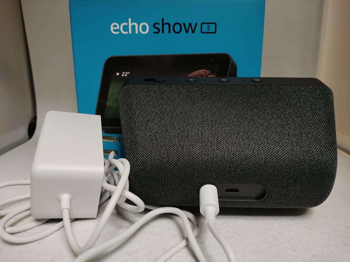 Echo Show 5、グレーシャーホワイト電源アダプタ (15W - ケーブル1.5m)、クイックスタートガイド