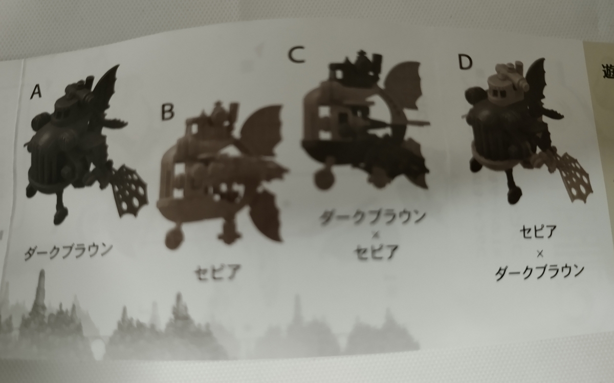 2023-10-02 トイズキャビン カプセルトイ TAKORASUコレクション カプセルトイ トイズキャビン カプセルトイ TAKORASUコレクション横幅:約100mmサイズ カプセルトイ TAKORASUコレクションラインナップ全4種遊び方組み立て方 ・ダークブラウン×セピアセット内容:機体1セット+説明書1枚 横幅:約100mmサイズ取っ手を回すと、内部の歯車と連動して両翼が羽ばたく。簡単な組み立てが必要です。以上、おつかれさまでした。